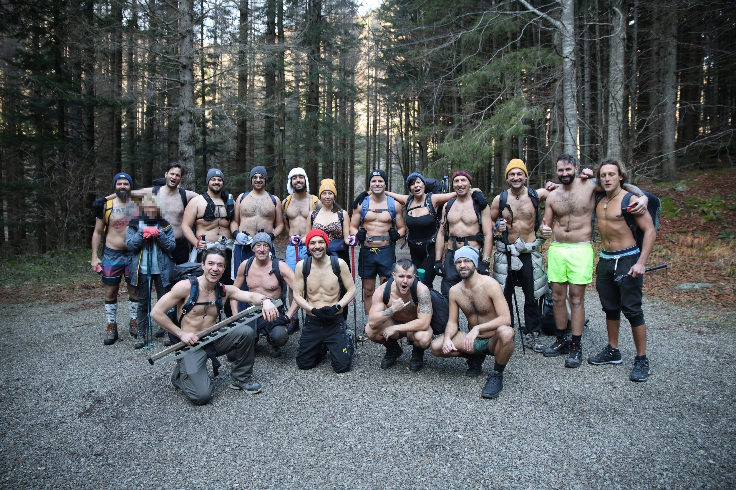 Escursione in stile Wim Hof a torso nudo nel bosco